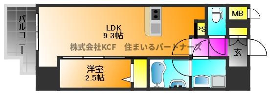 洋室 2.5帖/LDK 9.3帖 - 向き
